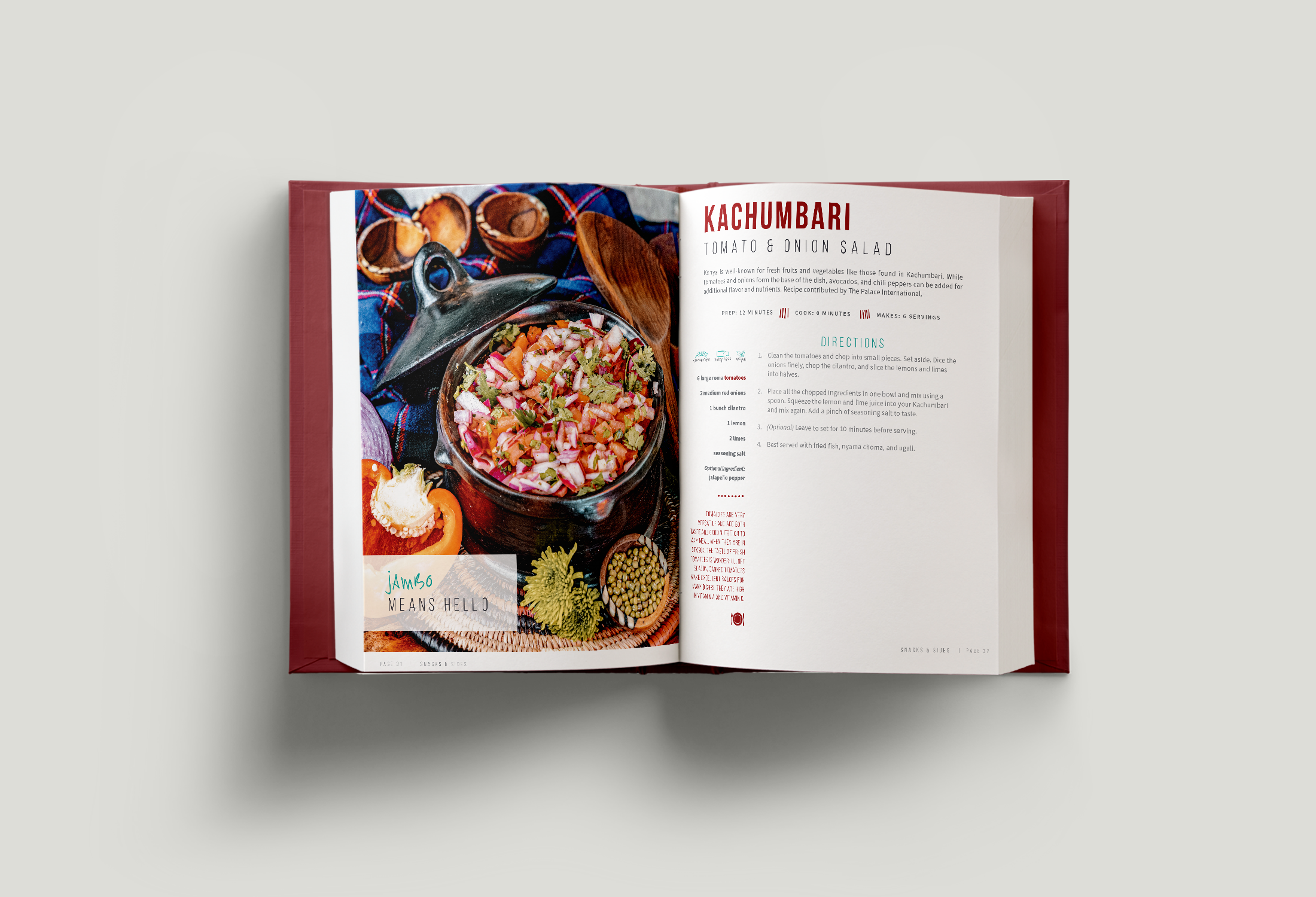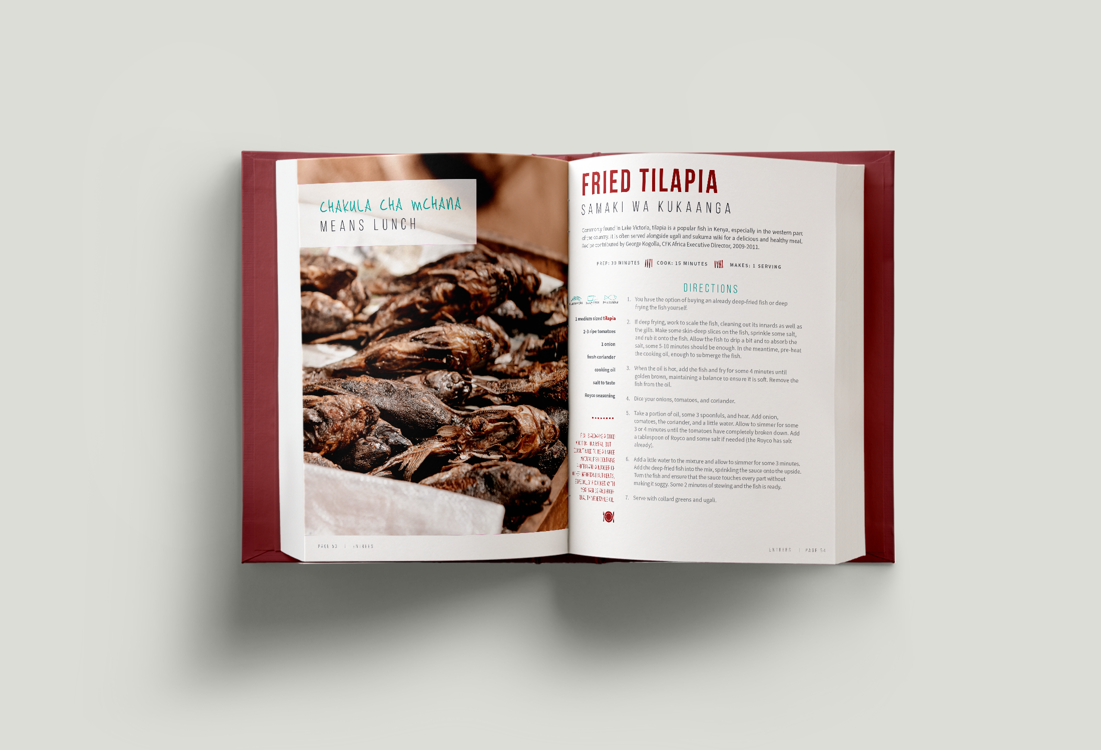 Centering high-quality, colorful food photography to accompany recipes and Kenyan cooking insight to bring the cookbook to life.