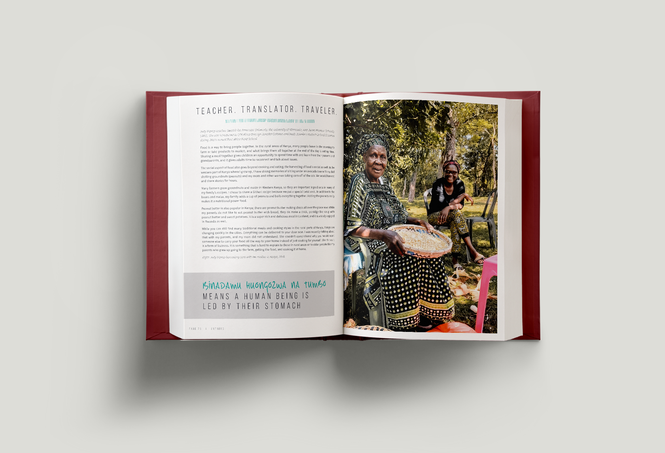 I knew food, impact, and culture was the meat of the CFK Africa cookbook. I developed creative direction to support this unique publication by: