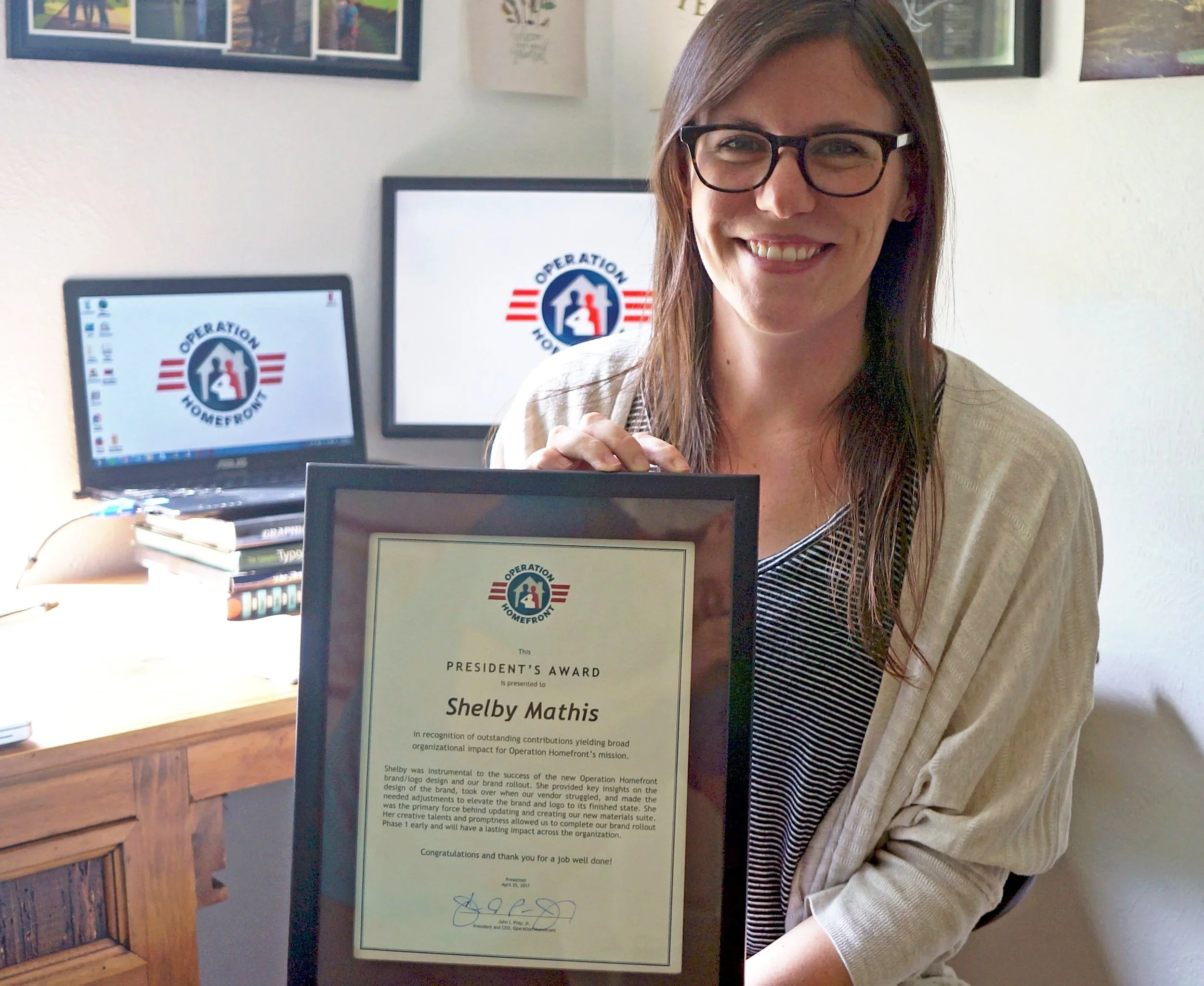 “Shelby was instrumental to the success of the new Operation Homefront branding and logo design and our brand rollout. She provided key insights on the the branding, took over when our vendor struggled, and elevated the brand and logo. Her creative talents and promptness allowed us to complete our brand rollout early and will have a lasting impact across the organization.”